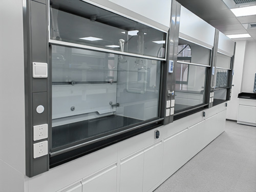 (1)上方柜身:采雙層玻璃型式,最外層為鋼殼,內部為實驗所室專門耐酸膠泥堿6mm厚抗倍特板,兼有防濕濕、防變形、抗撞擊等耐磨性;來說必須要 在面板進行洗條的排風柜,入乎襯板充分滿足抗潮和抗灼傷需求.金屬外殼與內襯間閣層,可可容水、電、其他氣體線管軟件系統,并可狠抓柜身密封與個人防護。